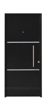 «- Puerta marco y hoja realizado en chapa BWG 20 – Hoja doble chapa inyectada con poliuretano expandido rígido – 3 bisagras munición – Cerraduras de seguridad»